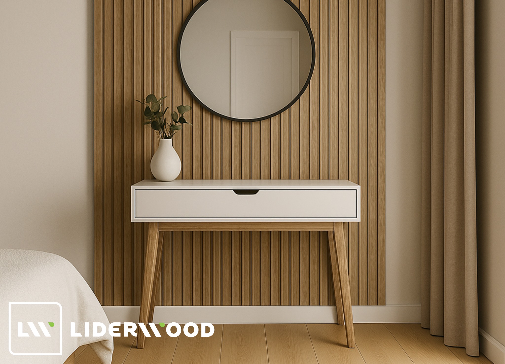 Dekorativní lamely jsou jedním z těch prvků interiéru, které dokážou zcela změnit charakter prostoru. Díky nim působí místnost uspořádaněji, elegantněji a moderněji. V nabídce Liderwood naleznete širokou paletu barev a povrchů, což umožňuje jejich použití v různých místnostech i stylech zařízení. Níže uvádíme několik inspirací, které ukazují, jak všestranné toto řešení může být – všechny vizualizace byly vytvořeny na základě skutečných barev dostupných v nabídce Liderwood (s upozorněním, že barvy na vizualizacích se mohou mírně lišit od skutečných v závislosti na nastavení monitoru a specifikách digitální grafiky).