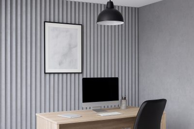 V domácí kanceláři se skvěle uplatní lamely v barvě Šedý Brokát. Světle šedá struktura s jemným perleťovým leskem dodává prostoru moderní, lehký charakter a zároveň podtrhuje profesionální styl místnosti. Světlá barva se výborně kombinuje se světlým dřevem, černou i bílou, takže snadno zapadne do moderních interiérů. Lamely v tomto provedení vytvářejí výraznou, ale nenápadnou strukturu stěny – přitahují pozornost, aniž by dominovaly celému prostoru.