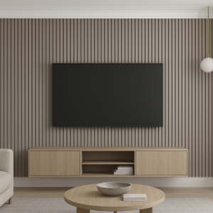 V obývacím pokoji se vyplatí zvolit výrazný, moderní akcent. Lamely Coffee Brokát se skvěle hodí na televizní stěnu, kde vytvářejí elegantní pozadí pro obrazovku i nábytek. Jejich výrazná struktura a sytá barva podtrhují moderní, lehce luxusní styl interiéru. Díky tomu získává odpočinková zóna nejen estetický rámec, ale i osobitý charakter ladící se zbytkem aranžmá.