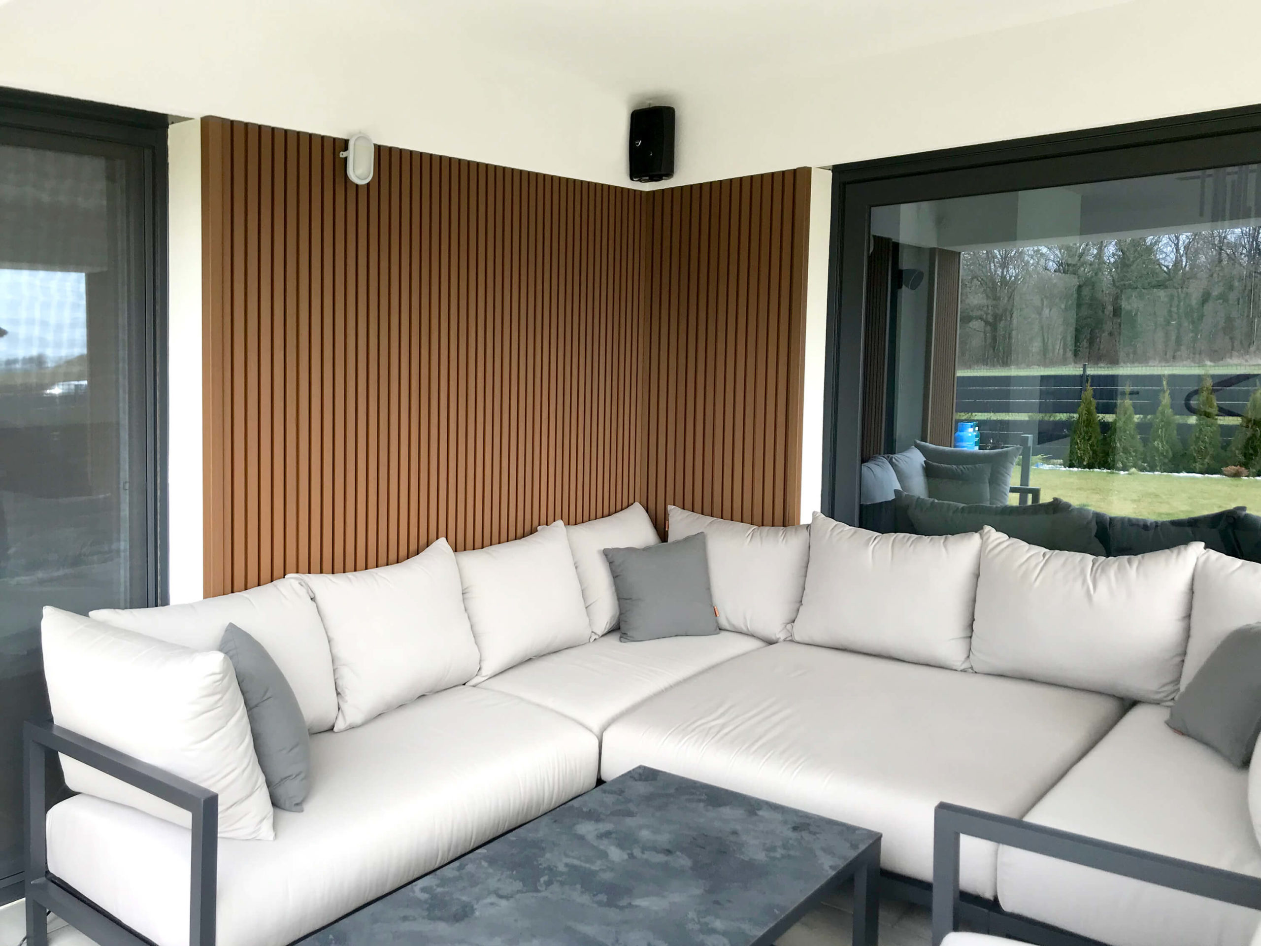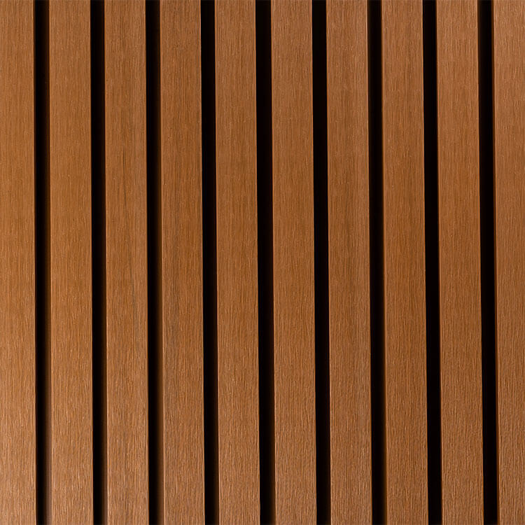 Lamelové obkladové prkno v barvě Teak (foto zákazníka Liderwood)