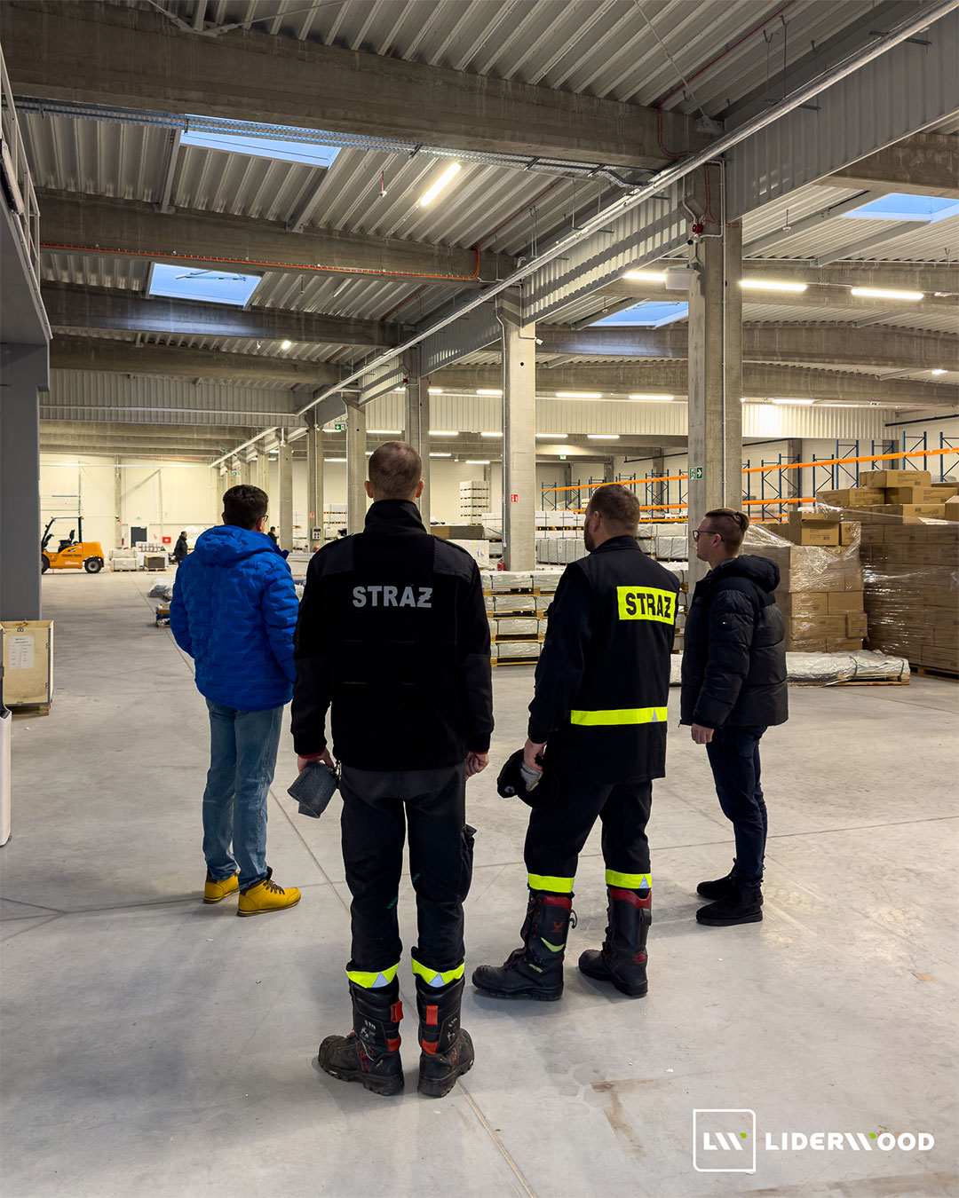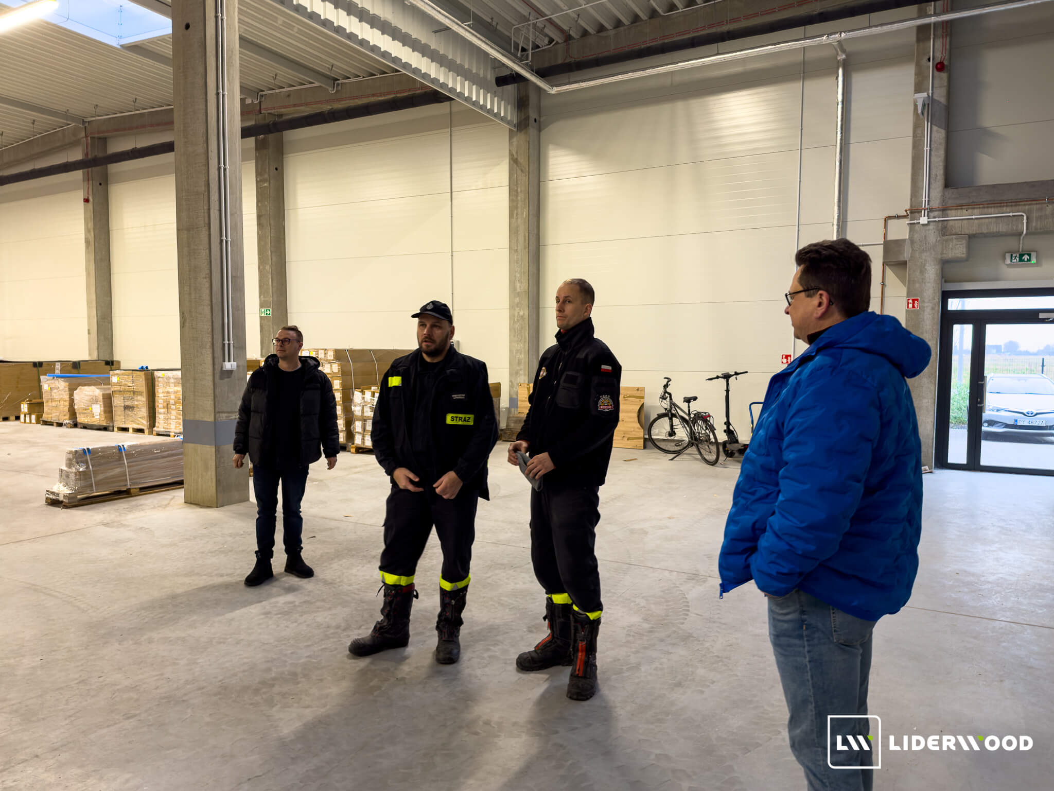 Setkání se zástupci Sboru dobrovolných hasičů v Mrzezině se uskutečnilo v nově otevřeném skladu společnosti Liderwood – prostoru,