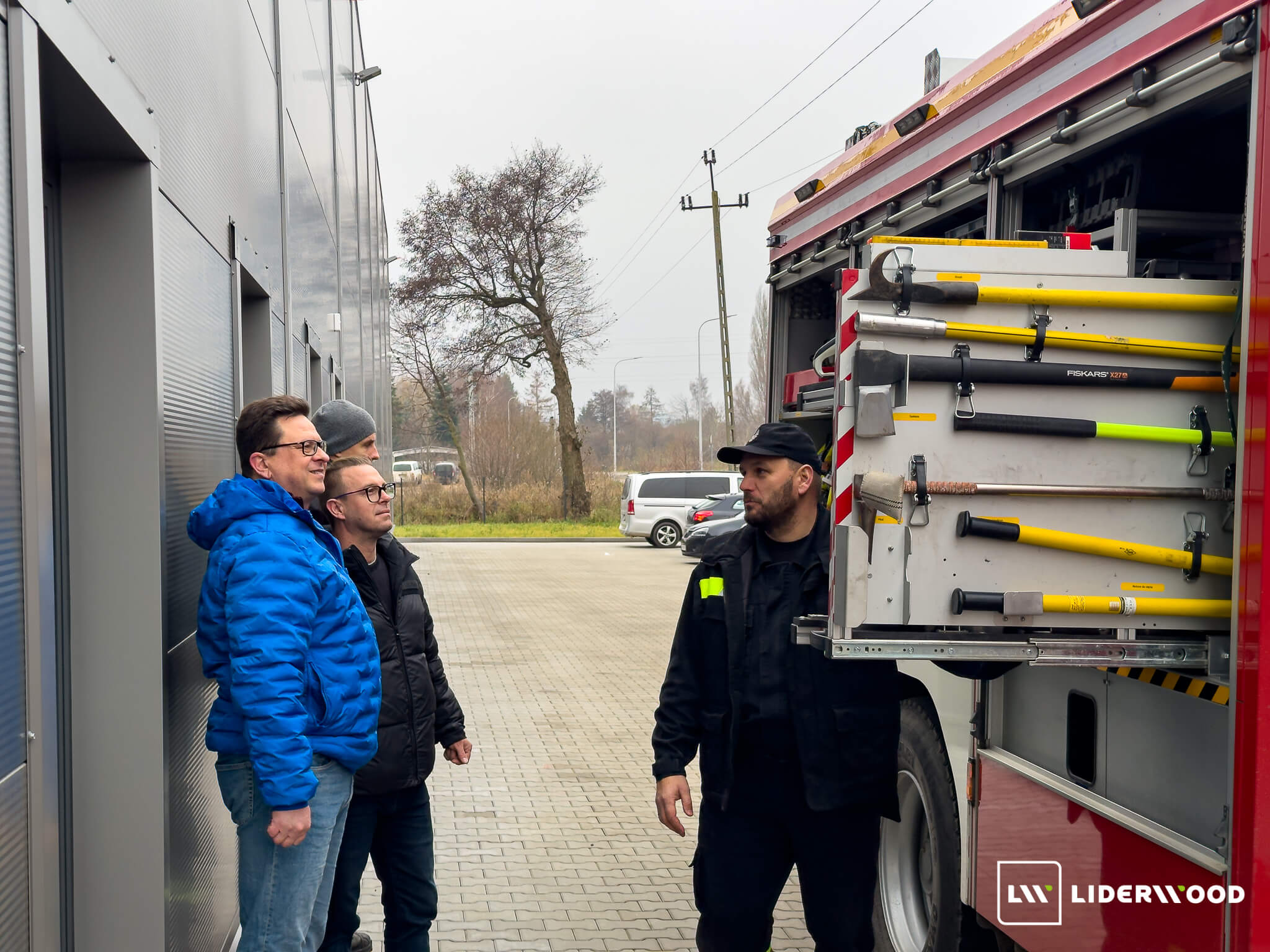 Akce se zúčastnili hasiči ze Sboru dobrovolných hasičů Mrzezino a vedení společnosti Liderwood. Přímé rozhovory nám umožnily lépe porozumět potřebám místní jednotky a vyměnit si zkušenosti. Věříme, že taková setkání jsou nesmírně důležitá a přínosná – ukazují, že podnikatelský rozvoj může a měl by jít ruku v ruce se společenskou odpovědností a společným budováním bezpečnějšího prostředí pro obyvatele regionu.