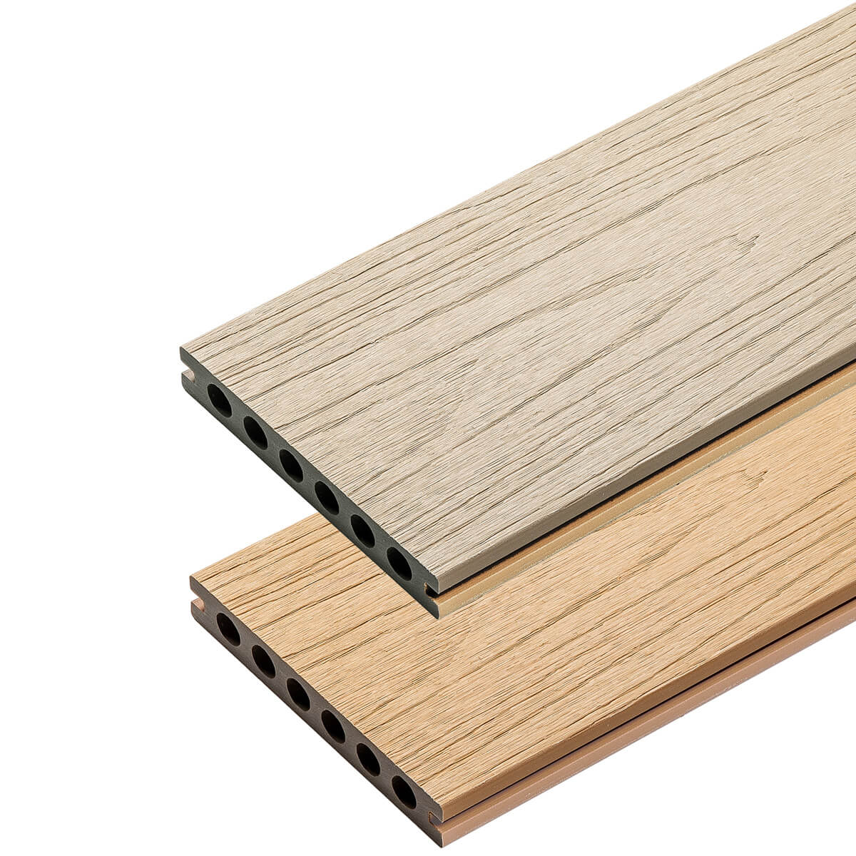 Oboustranná prkna poskytují větší aranžérskou flexibilitu – podle požadovaného vizuálního efektu můžete prkno otočit a přizpůsobit jeho strukturu nebo barvu stylu zahrady, fasády či nábytku. Je to praktické řešení, které nabízí větší svobodu při návrhu.