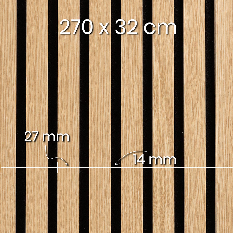 Akustické lamely na černém, pevném filcu jsou odolné, ale dostatečně flexibilní, aby se daly snadno přizpůsobit prostoru a snadno namontovat. Mají rozměry 270 x 32 cm. Existuje mnoho možností montáže, přičemž lamely lze i přizpůsobit pomocí řezání.
