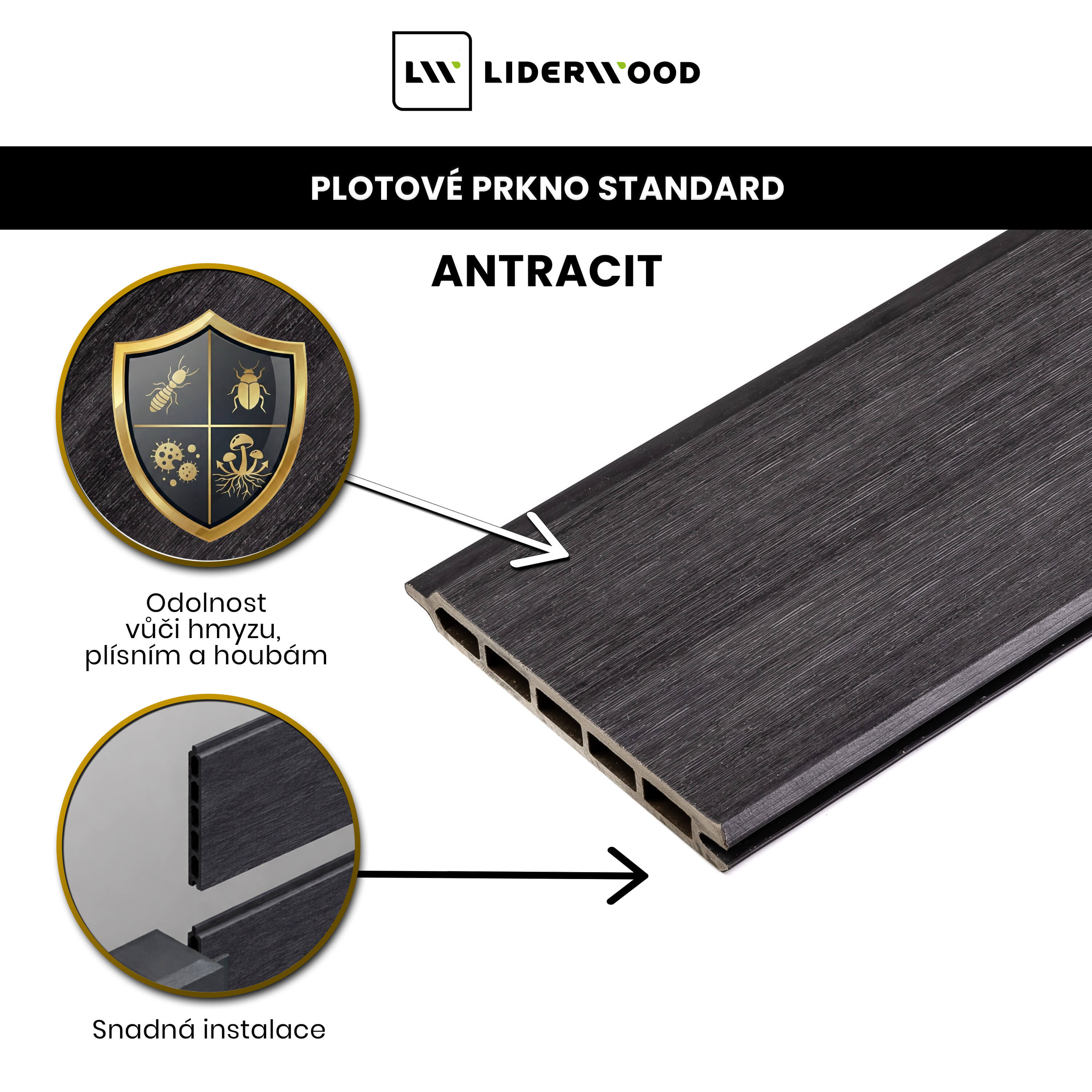 Plotové Prkno Standard Antracit 162 × 20 mm - 1,8 m