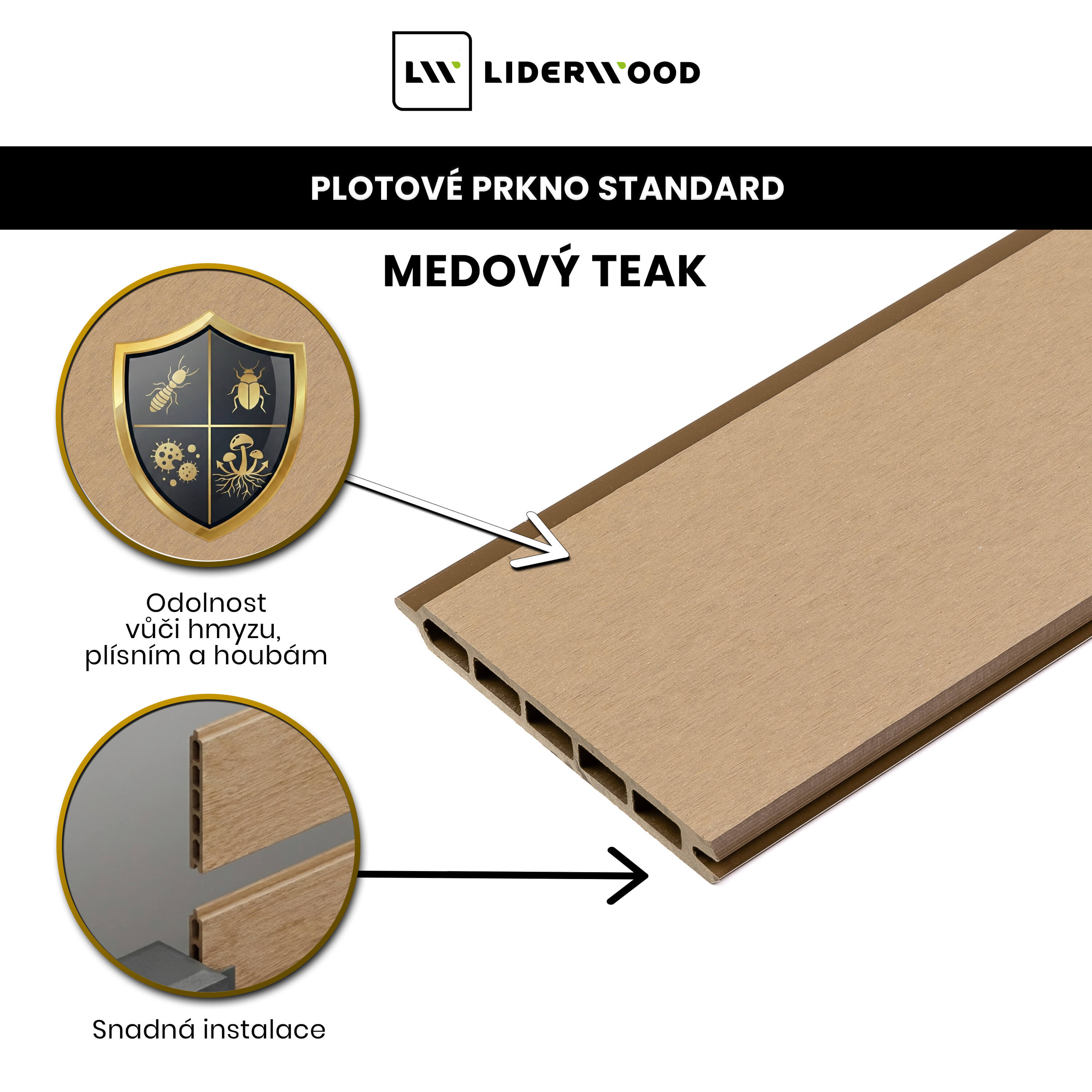 Představuje skvělou alternativu k přírodnímu dřevu, nabízí jeho estetiku a zároveň eliminuje problémy spojené s údržbou, impregnací a odolností vůči povětrnostním vlivům.