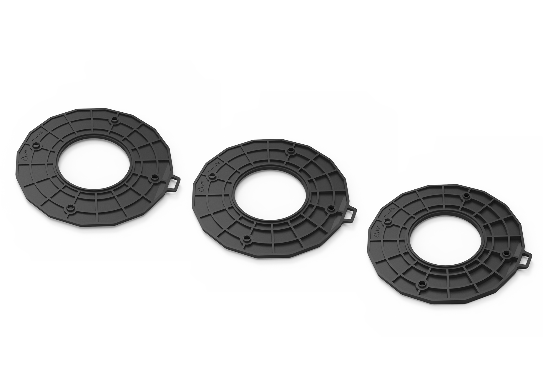 Przy pochyłym podłożu wymagane jest korzystanie z dedykowanych dysków poziomujących ze wzmocnionego polipropylenu.