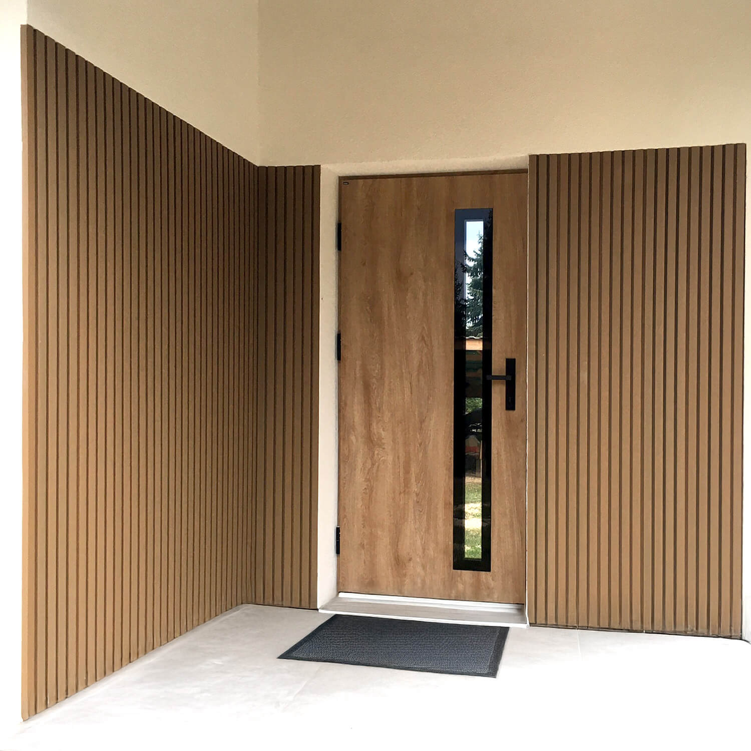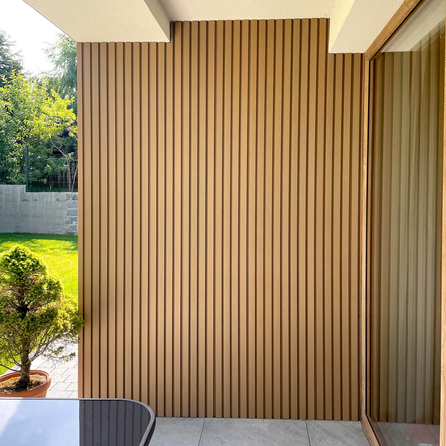 Venkovní lamelový obklad Premium je ideálním materiálem, který dodá fasádě osobitý vzhled. Díky inovativní technologii ražby a použitému polymerovému povlaku je deska odolná proti skvrnám a ztrátě barvy. Její odolnost proti povětrnostním vlivům, hnilobě, rozkladu a napadení hmyzem zaručuje dlouhou životnost a díky snadné údržbě bude fasáda vypadat vždy svěže.
