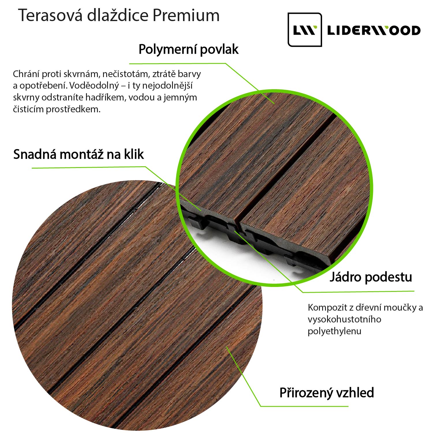 Terasová dlažba WPC Premium Redwood 30 x 30 x 2,5 cm