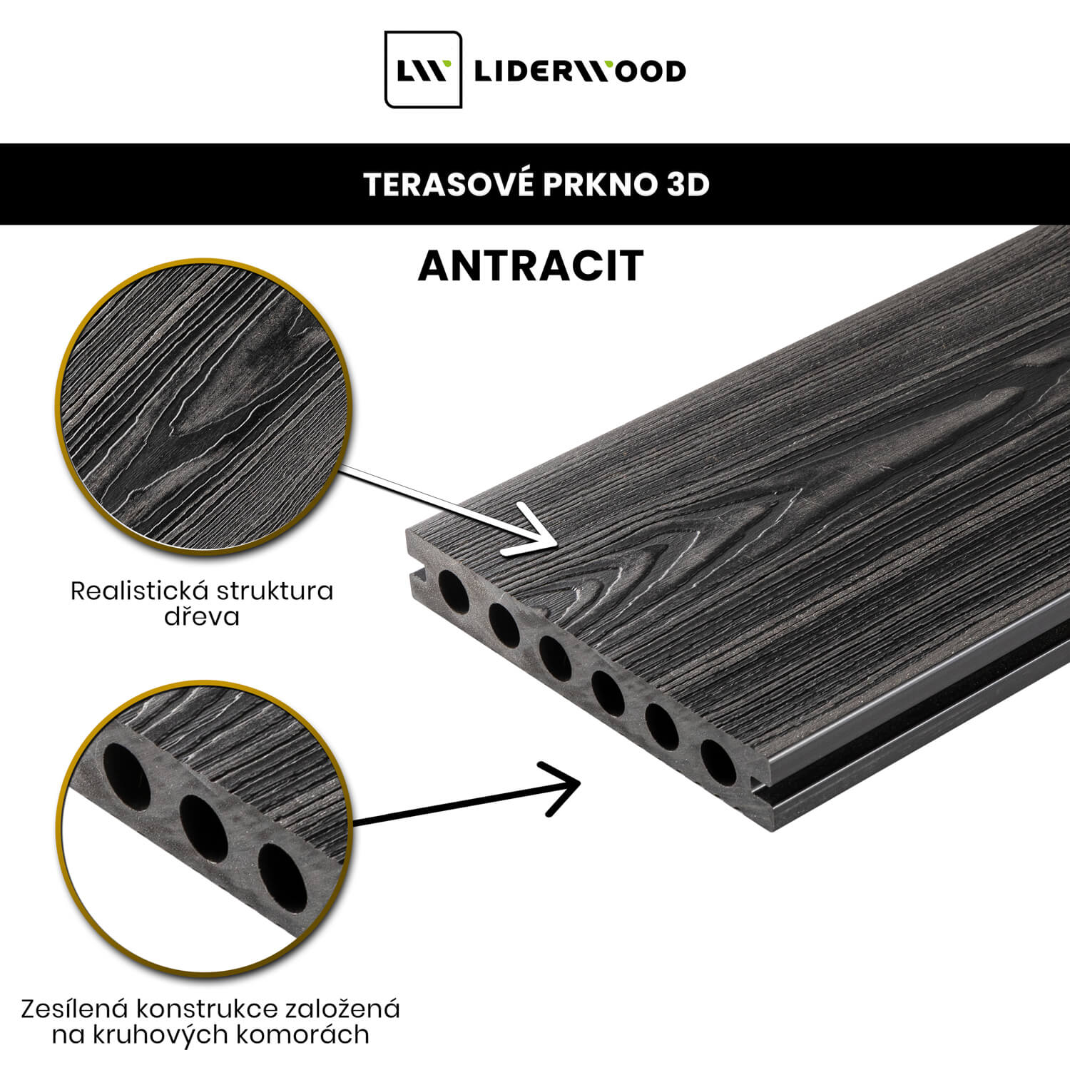 Terasové Prkno WPC 3D Antracit - 3,5 m