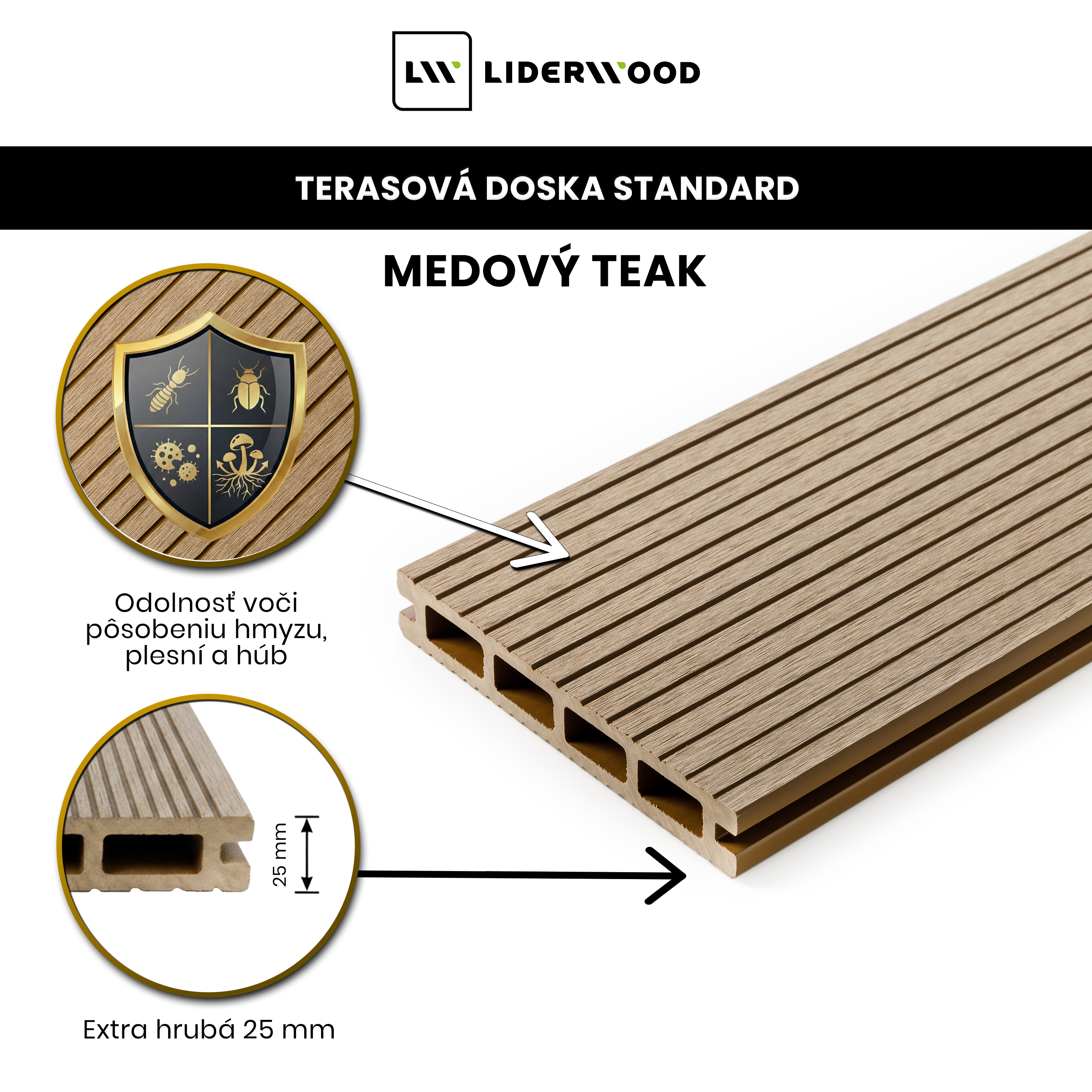 Terasové prkno WPC Standard Medové Teak - 3 m